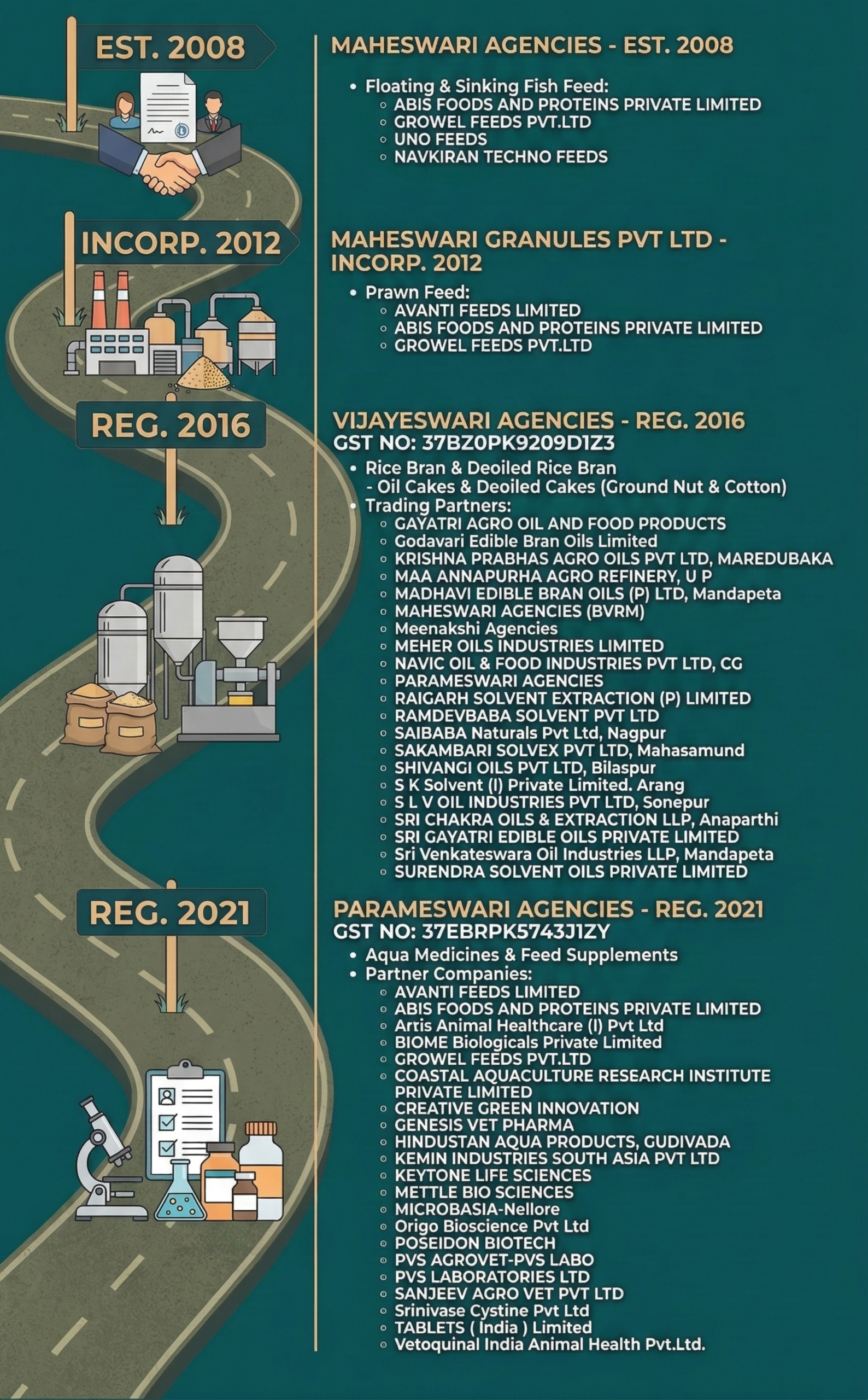 Under his leadership, the group has successfully expanded its operations across West and East Godavari, supported by a growing network of 50+ sub-dealers and partnerships with trusted brands such as ABIS, UNO Feeds, Growel, and Avanti.